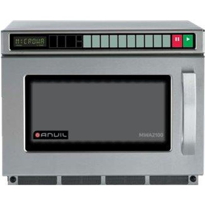 What is the power output of the Anvil MWA2100 Heavy Duty Microwave? The microwave has a powerful 2100W output.
