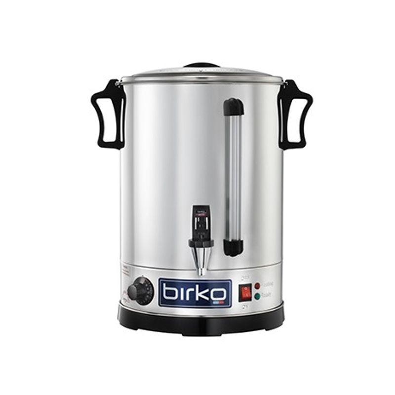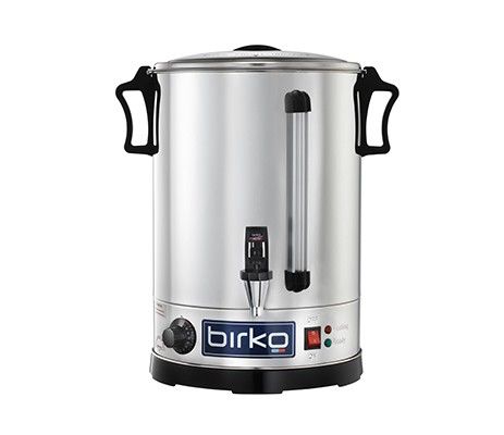 Standard inclusions – heating and ready indicator lights, on/off switch, water level sight glass, heat-resistant knobs, easy-lift safety handles and chrome plated brass non-drip tap, 5L 25-30 cup capacity.