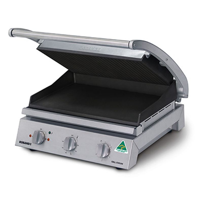 The Roband GrillStation is a versatile unit designed for simple, one-handed operation. The counter-balanced top plate and an arched handle allows for easy food loading and unloading, while the top plate stays open half way. This device also provides a clear view of settings with its angled control panel.