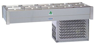| BR22 | Refrigerated bain-marie, fits 2 rows x 2 1/2 size pans, pans & lids not included | 480 Watts | 2.1 Amps | 705 x 615 x 255 # | Nil |