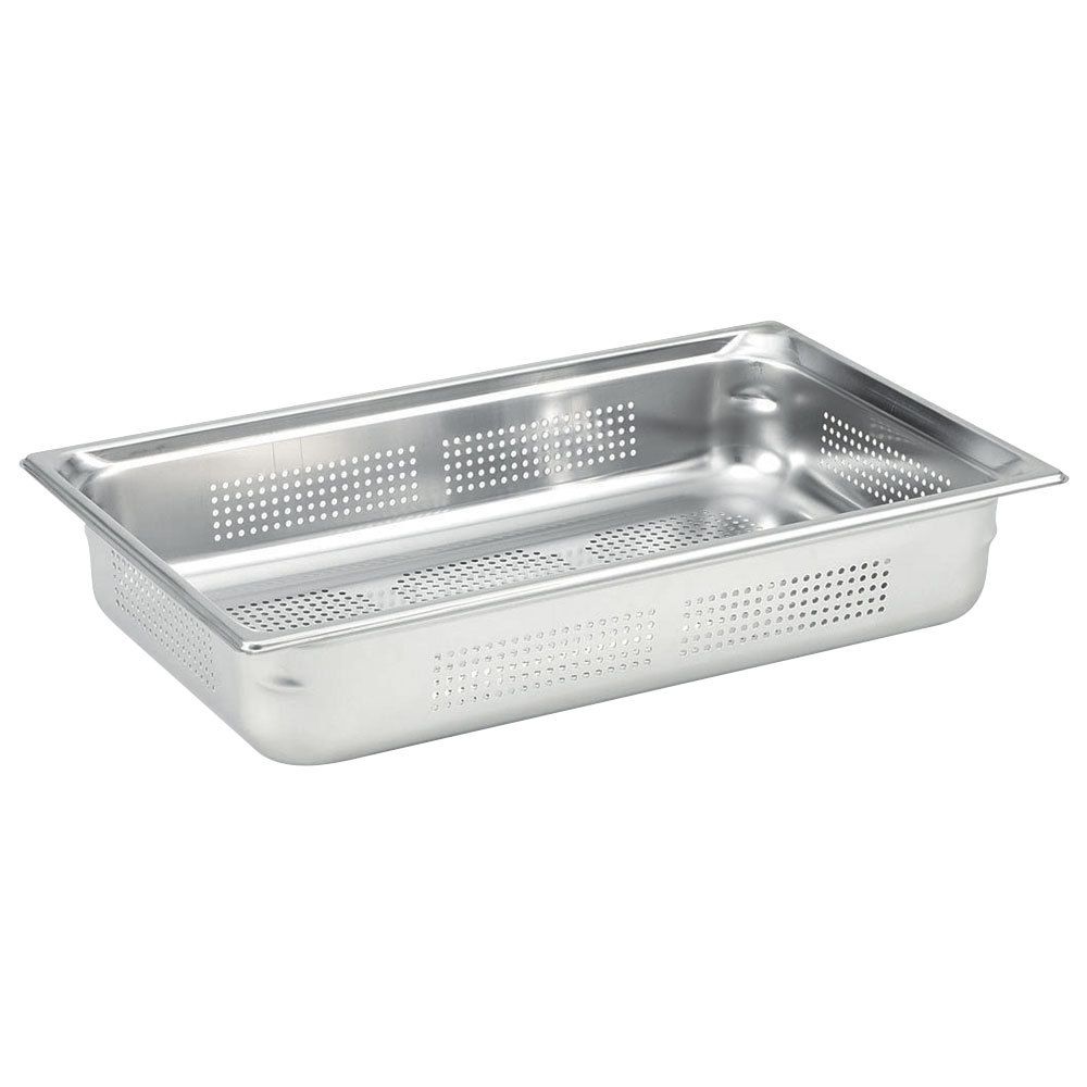 These 1/1 size Gastronorm trays are perfect for quick access to food. Each pan is perforated to allow for efficient drainage of liquids. Made from high quality Stainless Steel, these pans are perfect for use in the oven or the freezer. Reinforced U shaped corners allow for durability and Anti-Jam stacking.