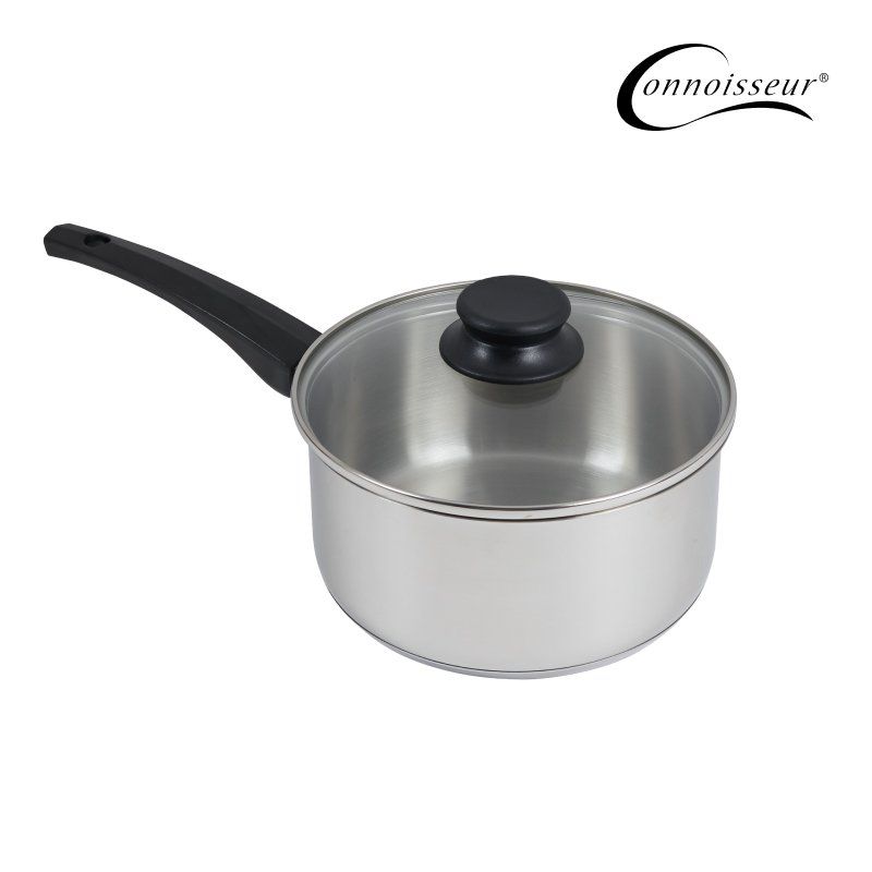 Stainless steel saucepan with glass lid
