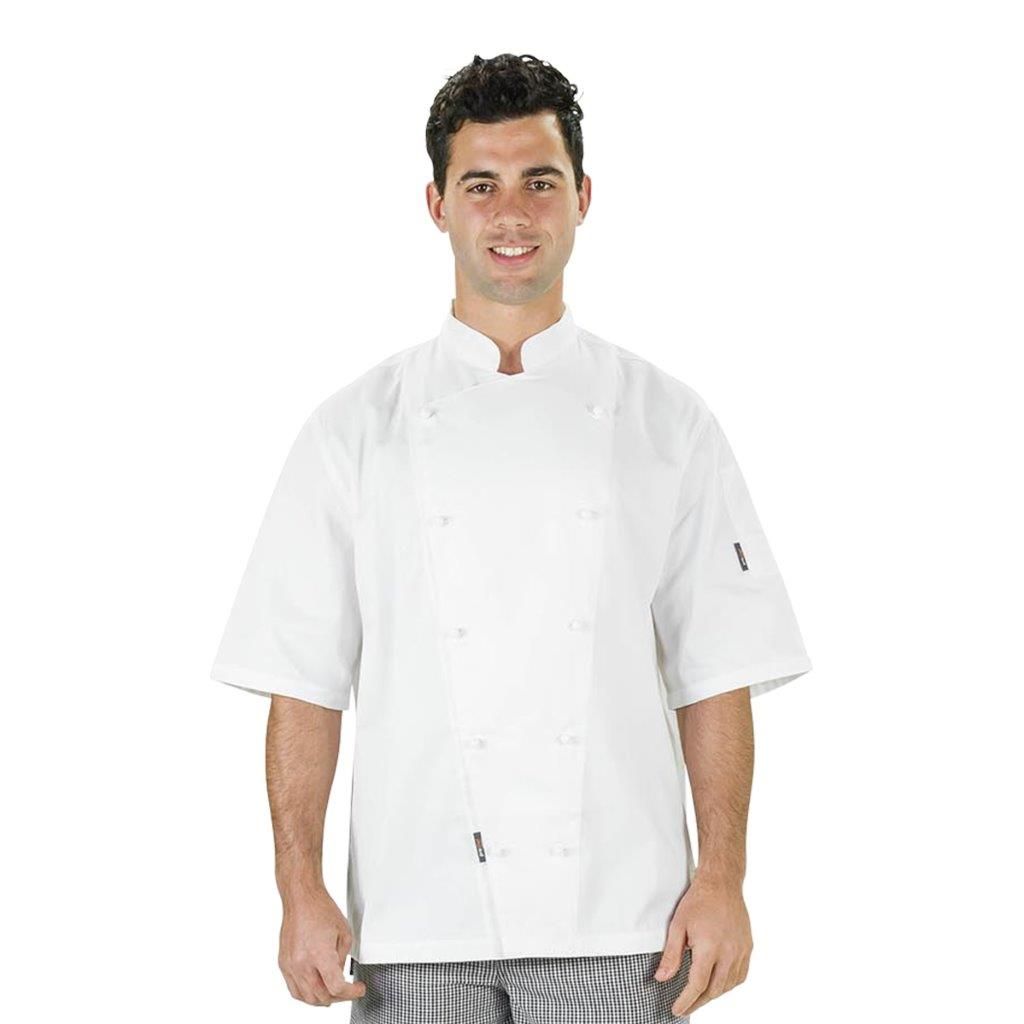 UAC04SS PROCHEF WHITE JACKET WITH BUTTONS SHORT SLEEVE LARGE