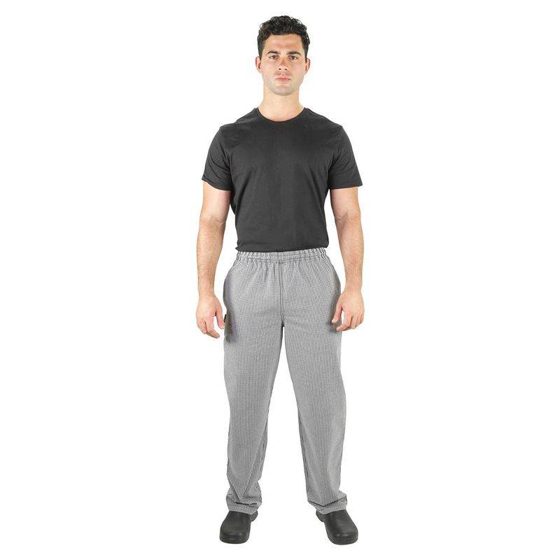 PROCHEF Traditional Check unisex Chef Pants are made to fit and feel great with a comfortable elastic waist band and drawstring for easy adjustment.