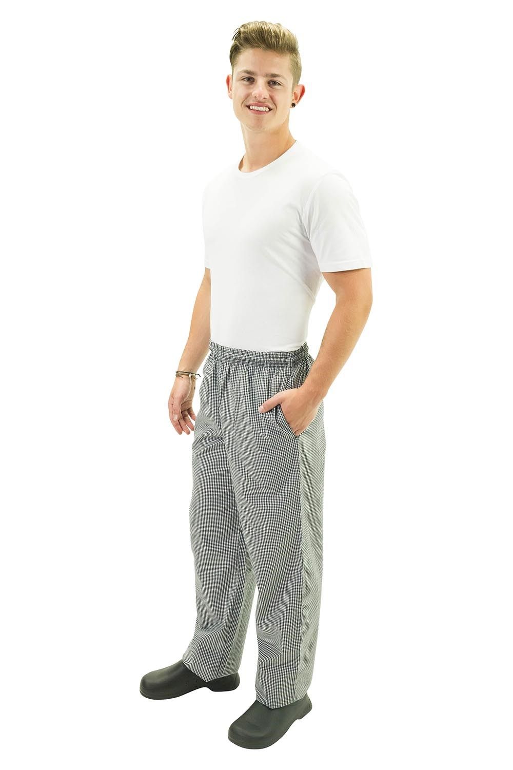 PROCHEF Traditional Check unisex Chef Pants are made to fit and feel great with a comfortable elastic waist band and drawstring for easy adjustment.