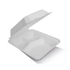 SUGARCANE TAKEAWAY CLAMSHELL 3 COMPARTMENT 229x229x80mm 100PKT