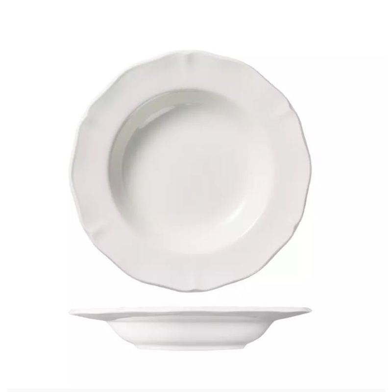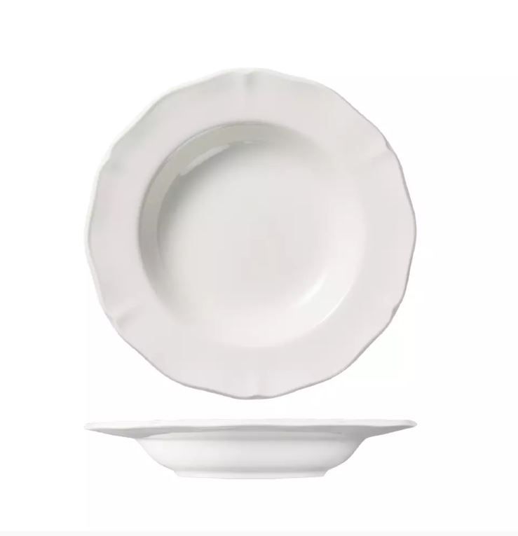 The creamy ivory colour enhances food presentation, with the scalloped edge framing the food beautifully and drawing the eye towards the center of the plate.