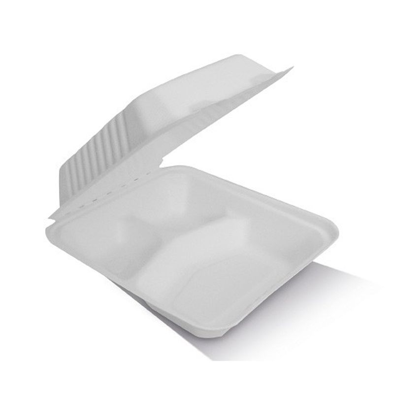 SUGARCANE TAKEAWAY CLAMSHELL 3 COMPARTMENT 203x203x58mm 50PKT