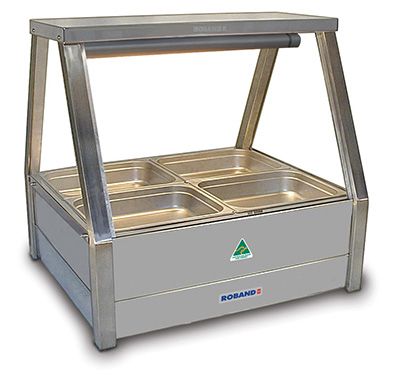 They are also designed to accommodate pans available from Roband Australia. Although other brands of pans may fit, this is not guaranteed due to variations in other manufacturers’ pans. Hot food display bars are designed to be served around and not over. If units are to be used in a serve over capacity, protection from hot surfaces will need to be considered. Environmental influences will affect the operating performance of hot food displays. Consideration should be given to food types, air movement and ambient temperatures before specifying. For dry, fried foods, Roller Doors are highly recommended.