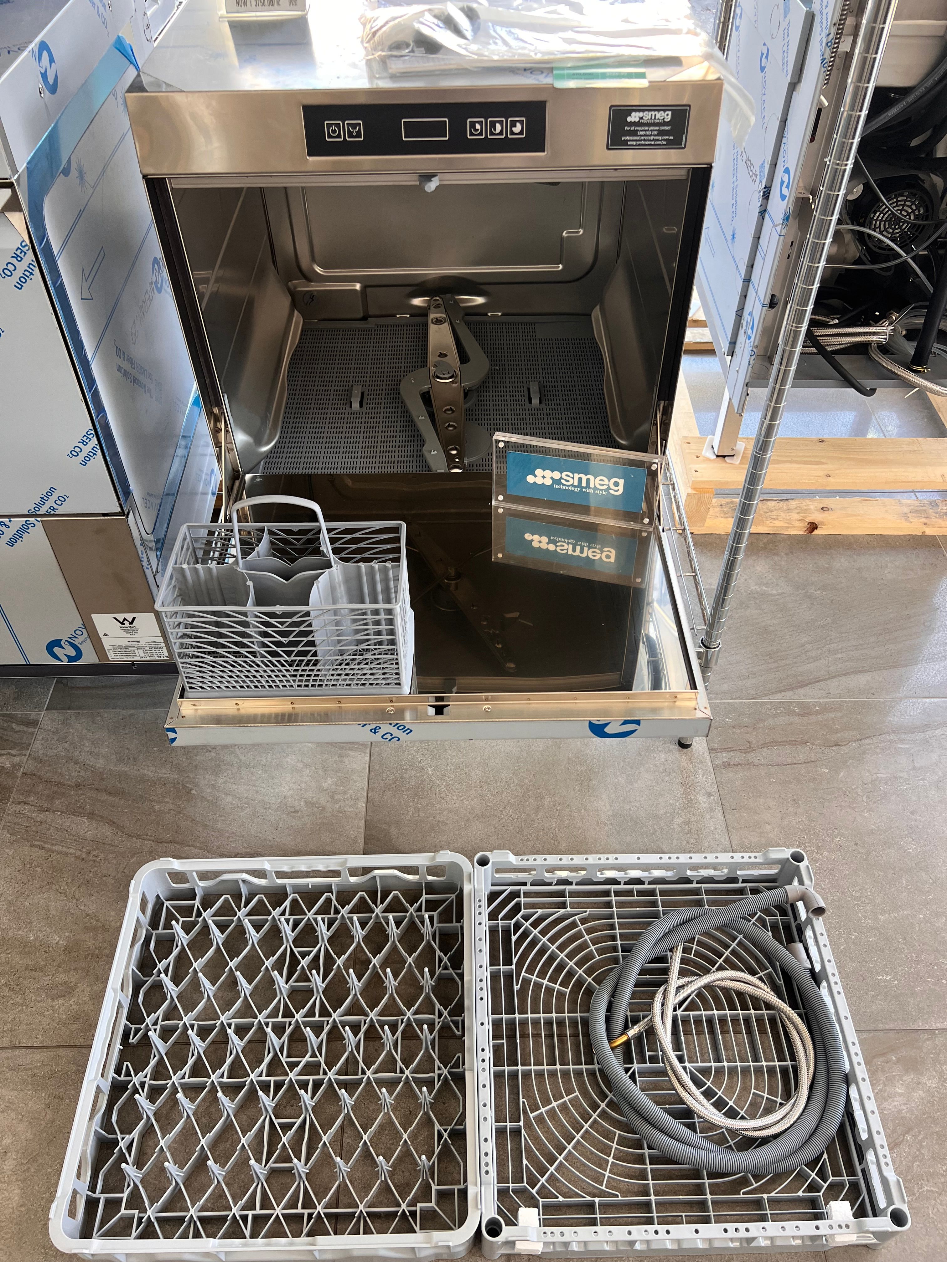 Elevate your kitchen's efficiency with the SMEG ECOLINE UD505DAUS Underbench Dishwasher. This compact yet powerful dishwasher, crafted in Italy since 1948, merges the reliability of professional-grade equipment with the convenience and intuitive design ideal for various commercial settings.