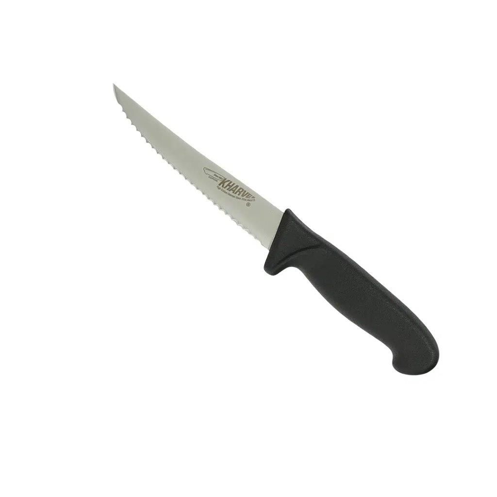 KHA48211 KHARVE UTILITY KNIFE SERRATED 13cm BLACK HANDLE