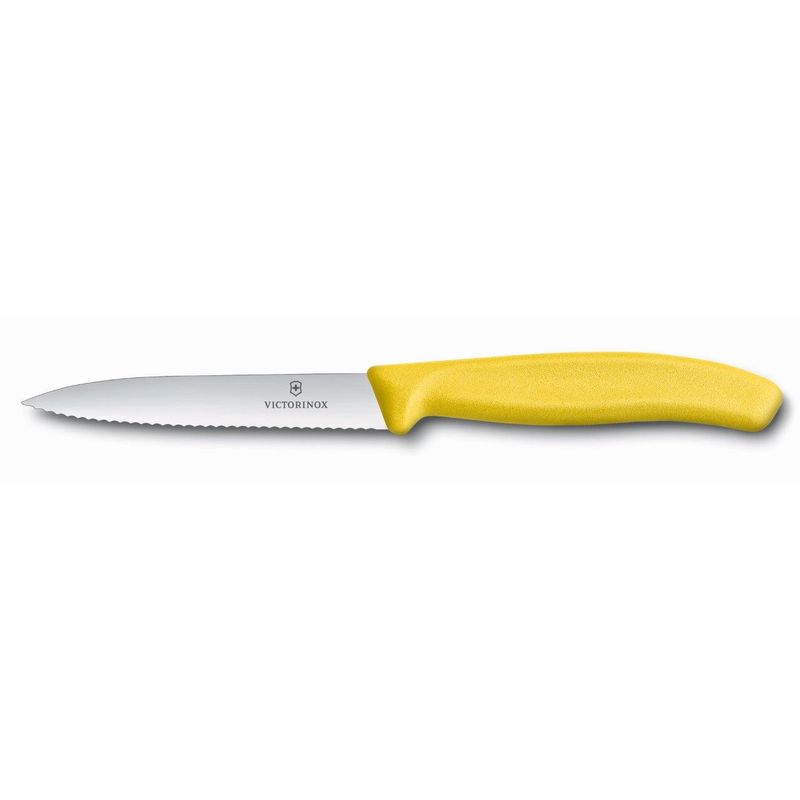 VICTORINOX FIBROX PARING KNIFE YELLOW POINTED SERRATED BLADE 100mm